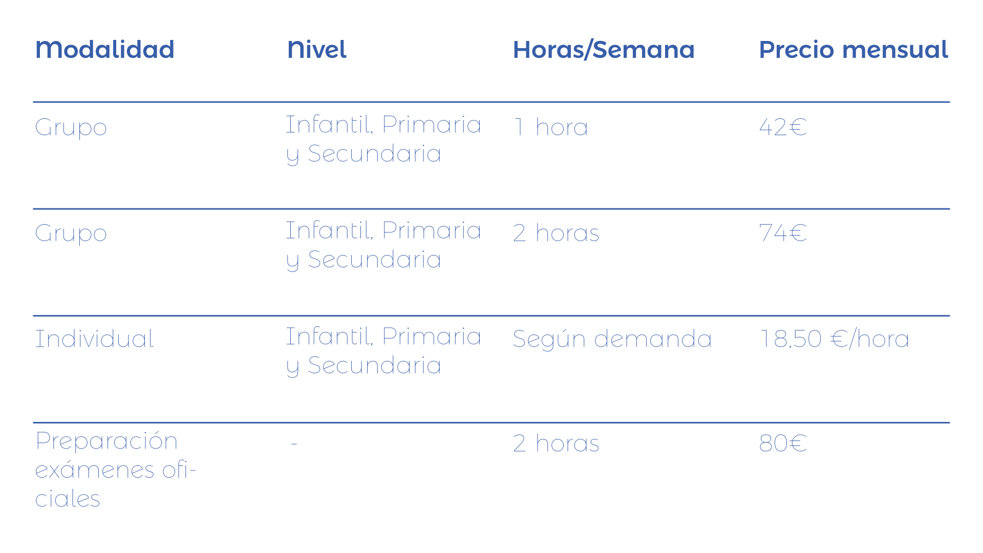Para cualquier consulta sobre horarios diferentes a los establecidos, podéis poneros en contacto con la academia.